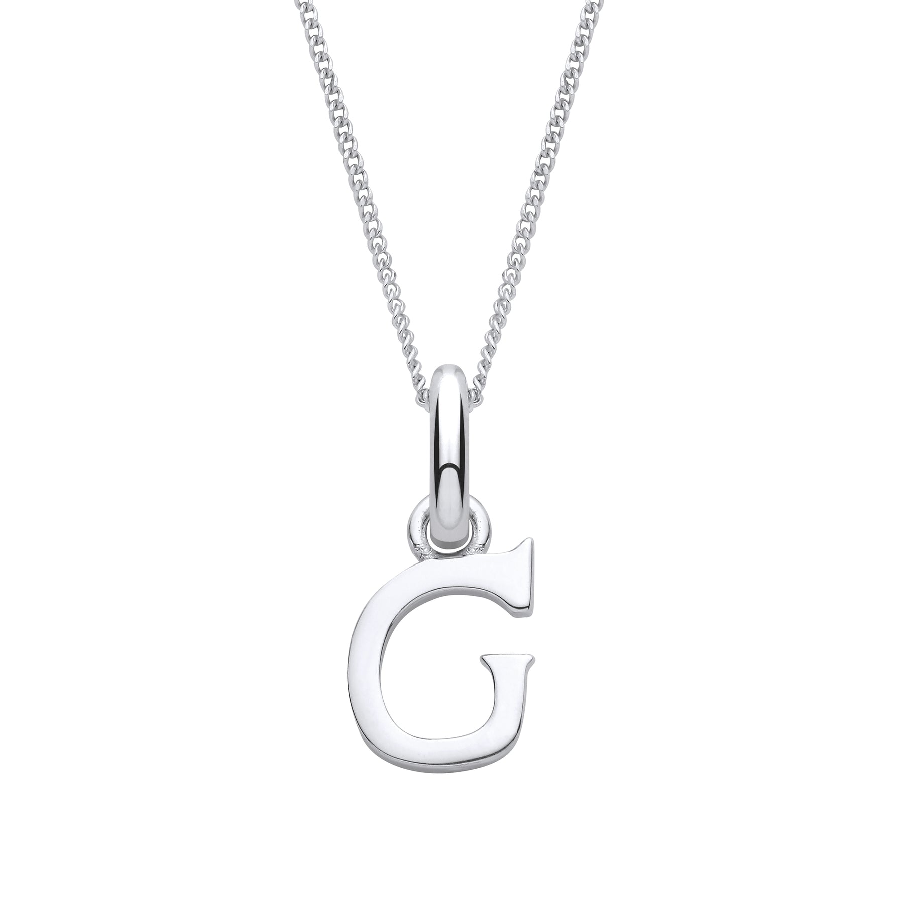 Elevate your jewellery collection with this refined sterling silver letter G pendant, gracefully suspended from a delicate 1mm sterling silver curb chain. Crafted from authentic 925 sterling silver, this understated initial charm embodies timeless elegance and subtle personalisation. Whether worn as a standalone accent or layered with complementary pieces, it brings a touch of understated sophistication to any ensemble. A discerning choice for those who appreciate quality craftsmanship and refined aesthetics.