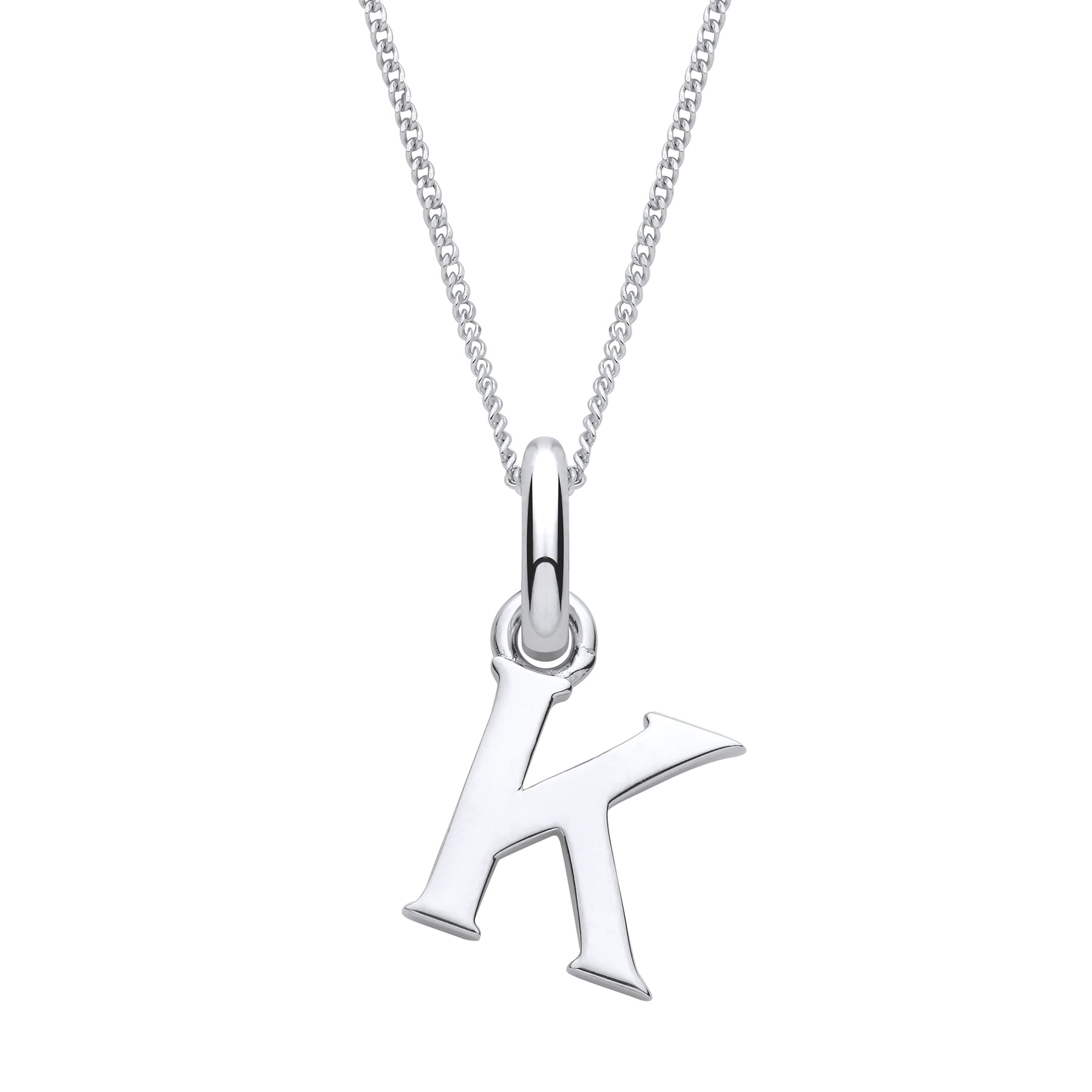 Sterling Silver Letter K with a 1mm Sterling Silver Curb Chain