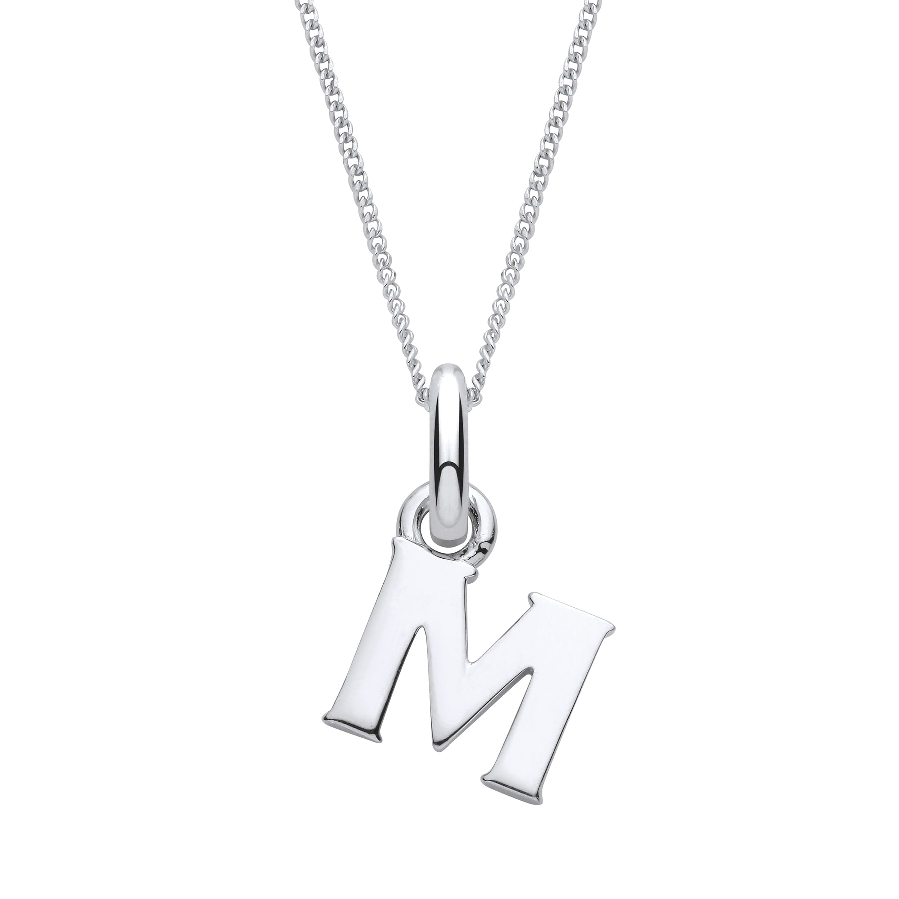 Make a subtle yet striking statement with this sterling silver letter M pendant, an elegant initial charm designed for those who appreciate refined jewellery. Suspended from a slender 1mm curb chain in matching sterling silver, this piece offers versatile styling—wear it solo for understated sophistication or layer it with other delicate chains. Whether commemorating a meaningful initial or simply drawn to its classic appeal, this pendant combines timeless design with exceptional craftsmanship. An ideal gift for someone special or a treasured addition to your personal collection.