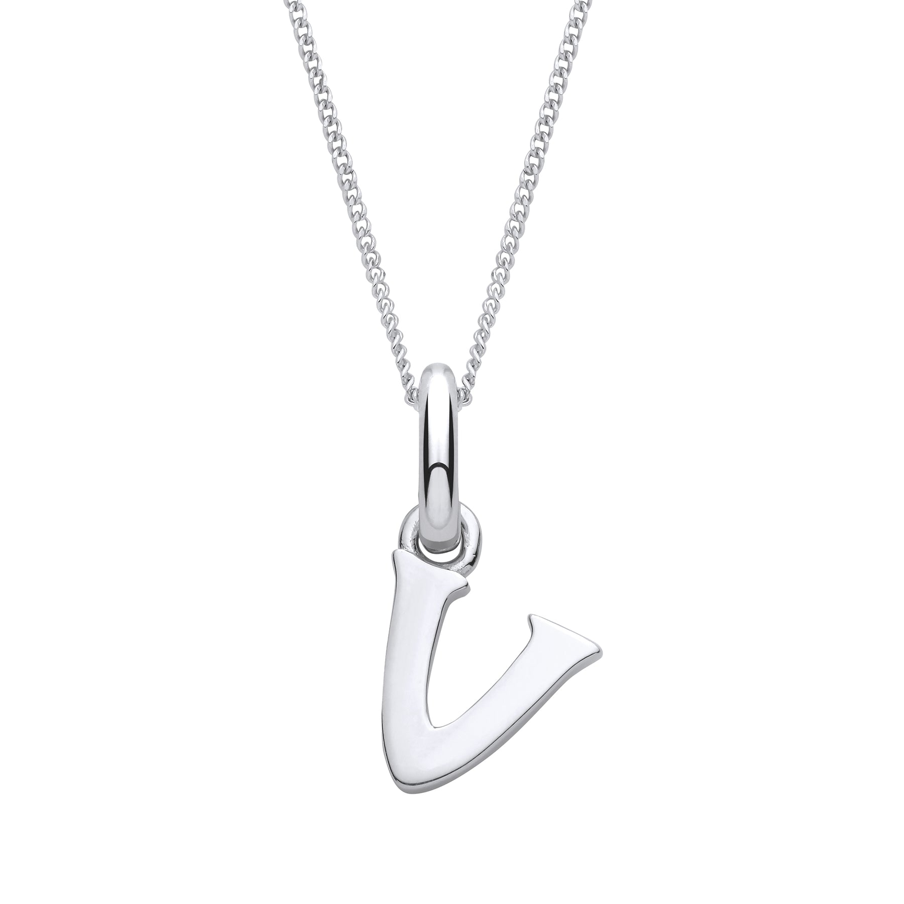 Celebrate individuality with this sterling silver letter V pendant, an elegant initial charm that brings understated refinement to your jewellery collection. Suspended from a delicate 1mm curb chain in matching sterling silver, this piece offers effortless versatility for layering or standalone wear. The V initial makes a thoughtful personalised gift or a meaningful addition to your own accessories. Expertly crafted from premium sterling silver, this pendant promises enduring beauty and timeless sophistication.