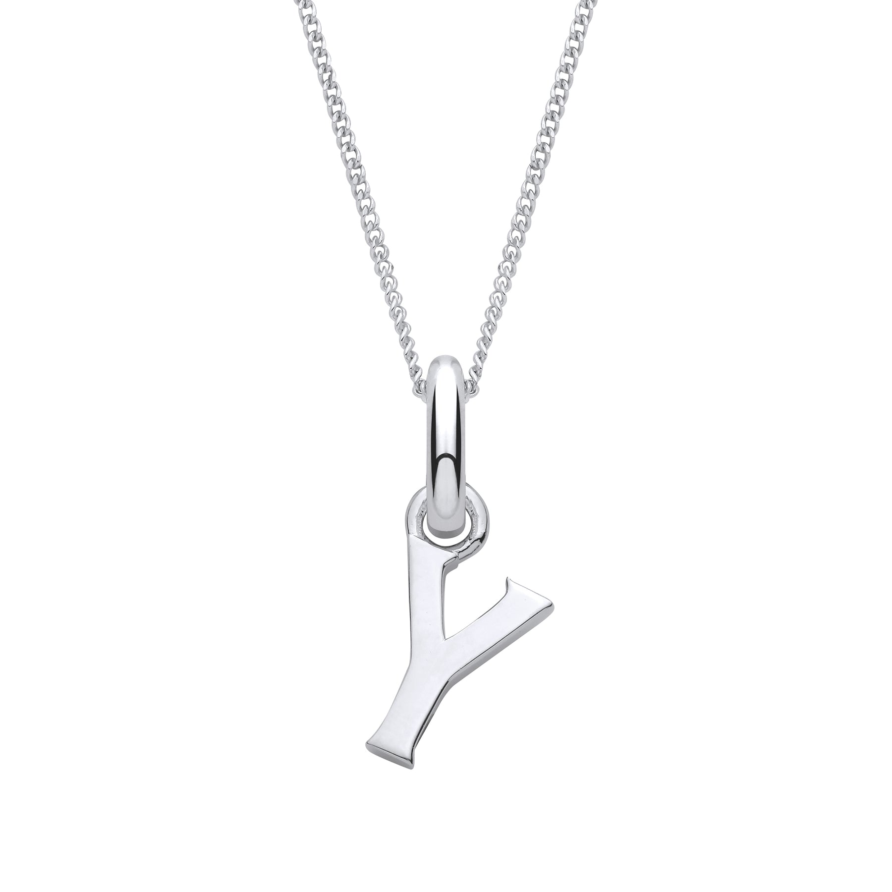 Celebrate individuality with this sterling silver letter Y pendant, an understated initial charm that speaks to refined personal style. Suspended from a delicate 1mm curb chain in matching sterling silver, this piece offers effortless sophistication for layering or wearing solo. The Y initial makes a thoughtful personalised accessory or a meaningful gift for someone cherished. Expertly fashioned from premium sterling silver, this pendant combines timeless design with exceptional durability, becoming a signature piece in your jewellery repertoire.