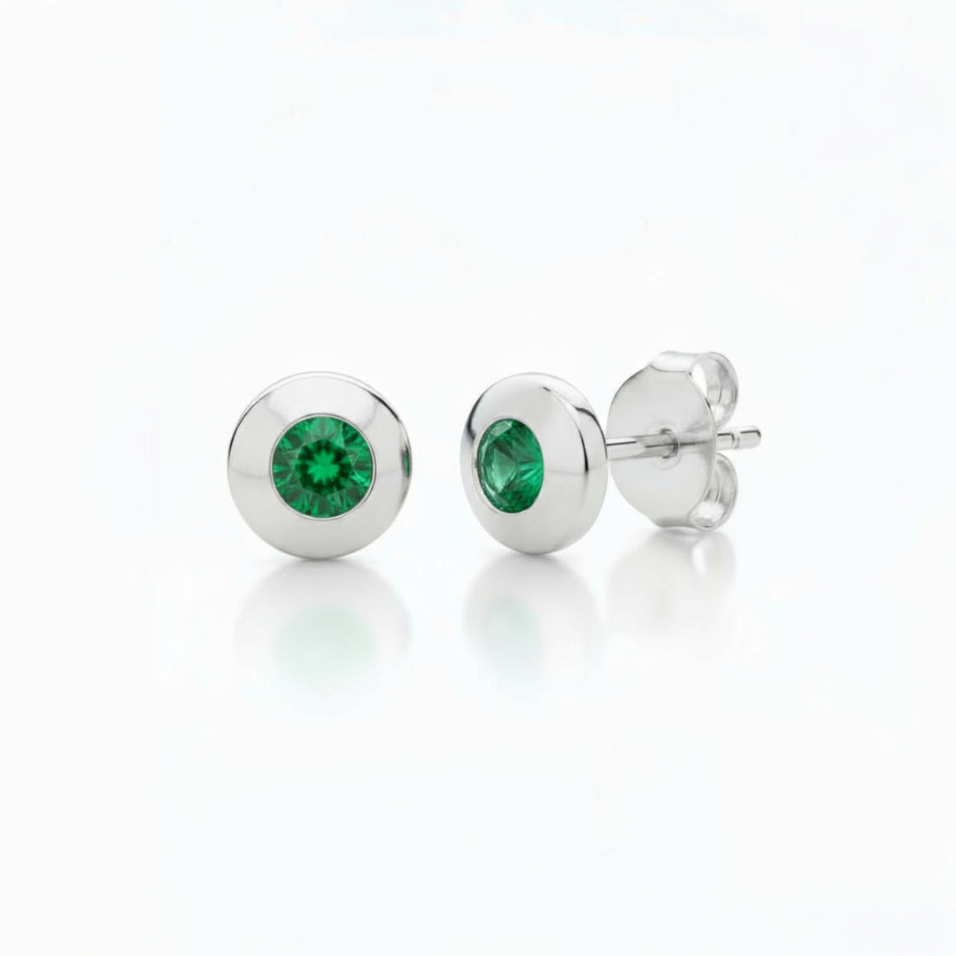 Sterling Silver Bezel Set Real Emerald Earrings