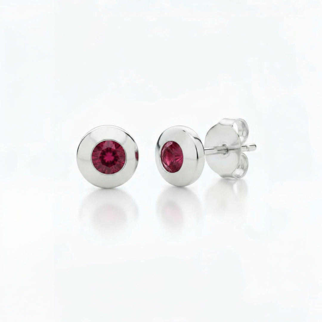 Sterling Silver Bezel Set Real Ruby Earrings